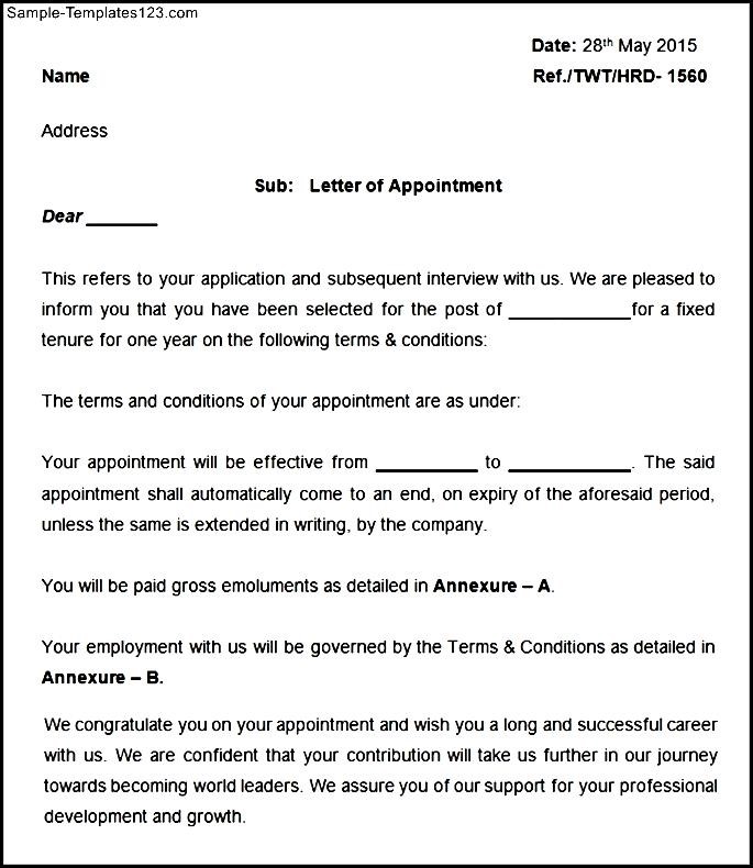 Sample Appointment Letter