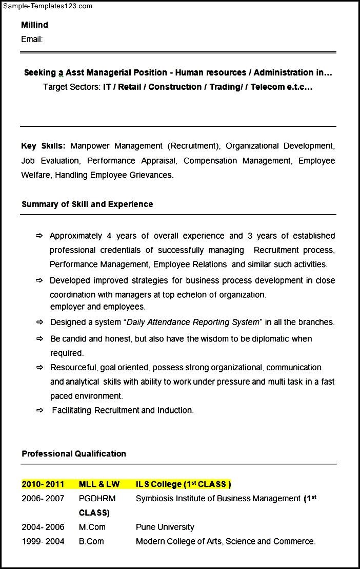 Sample Asst HR Manager Resume Format was posted in May 31, 2017 at 9:31 pm. If you wanna have it as yours, please click the Pictures and you will go to click right mouse then Save Image As and Click Save and download the Sample Asst HR Manager Resume Format Picture.. Don’t forget to share this picture with others via Facebook, Twitter, Pinterest or other social medias! we do hope you'll get inspired by SampleTemplates123... Thanks again! If you have any DMCA issues on this post, please contact us!
