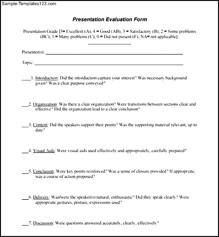 Presentation Evaluation Form Example