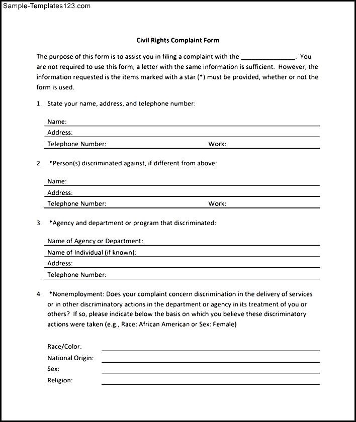 Sample Civil Rights Complaint Form
