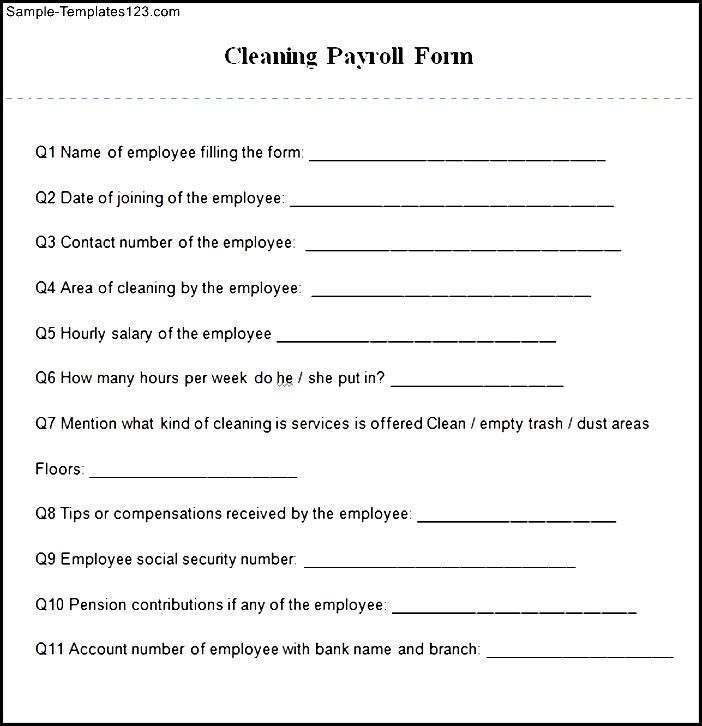 Sample Cleaning Payroll Form was posted in June 21, 2017 at 6:24 pm. If you wanna have it as yours, please click the Pictures and you will go to click right mouse then Save Image As and Click Save and download the Sample Cleaning Payroll Form Picture.. Don’t forget to share this picture with others via Facebook, Twitter, Pinterest or other social medias! we do hope you'll get inspired by SampleTemplates123... Thanks again! If you have any DMCA issues on this post, please contact us!