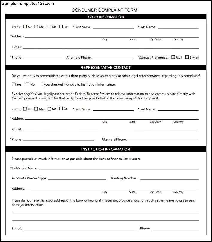 Sample Consumer Complaint Form