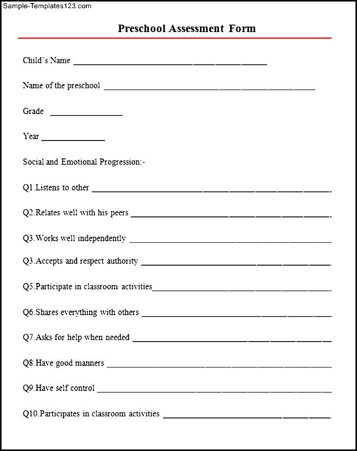 Sample Preschool Assessment Form was posted in June 25, 2017 at 8:06 am. If you wanna have it as yours, please click the Pictures and you will go to click right mouse then Save Image As and Click Save and download the Sample Preschool Assessment Form Picture.. Don’t forget to share this picture with others via Facebook, Twitter, Pinterest or other social medias! we do hope you'll get inspired by SampleTemplates123... Thanks again! If you have any DMCA issues on this post, please contact us!