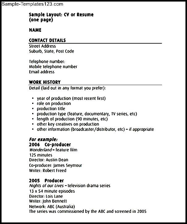 Printable Acting CV Template :