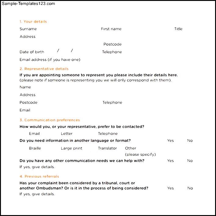 Simple Financial Ombudsman Complaint Form was posted in June 27, 2017 at 3:07 pm. If you wanna have it as yours, please click the Pictures and you will go to click right mouse then Save Image As and Click Save and download the Simple Financial Ombudsman Complaint Form Picture.. Don’t forget to share this picture with others via Facebook, Twitter, Pinterest or other social medias! we do hope you'll get inspired by SampleTemplates123... Thanks again! If you have any DMCA issues on this post, please contact us!