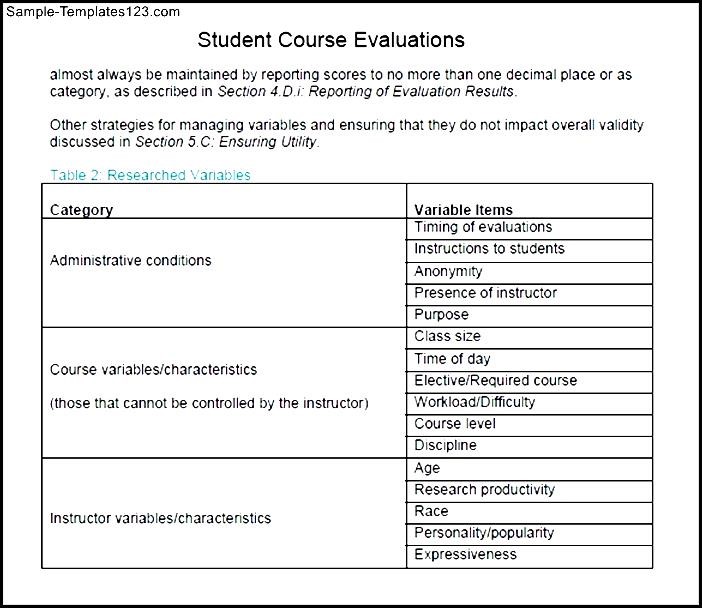 Student Evaluation Sample Template