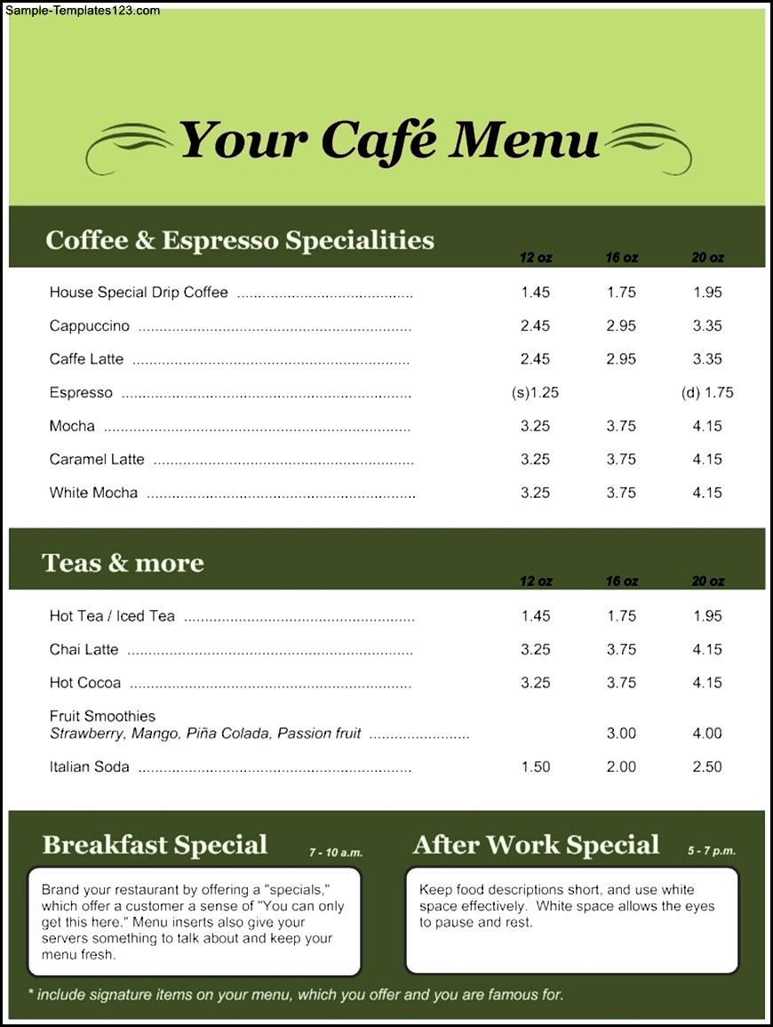 Menu Template was posted in July 4, 2017 at 5:47 pm. If you wanna have it as yours, please click the Pictures and you will go to click right mouse then Save Image As and Click Save and download the Menu Template Picture.. Don’t forget to share this picture with others via Facebook, Twitter, Pinterest or other social medias! we do hope you'll get inspired by SampleTemplates123... Thanks again! If you have any DMCA issues on this post, please contact us!
