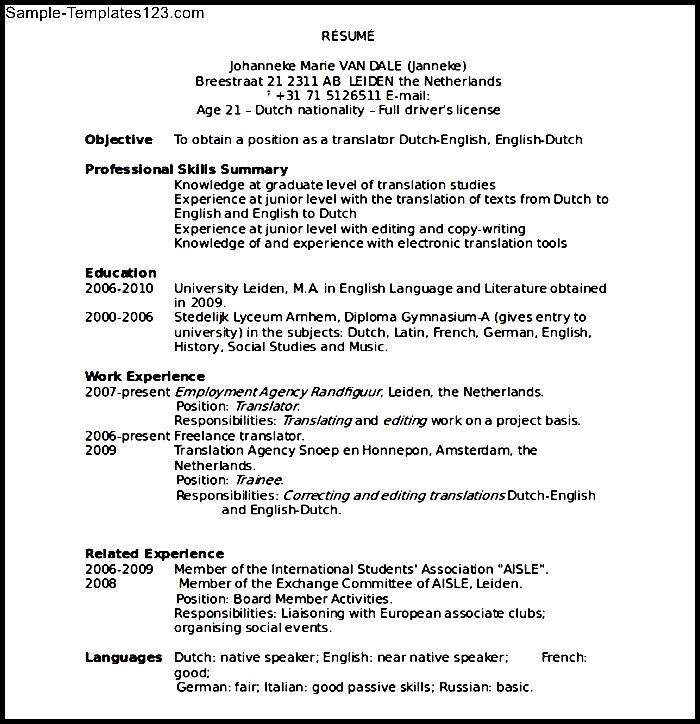 Resume Templates Microsoft Word was posted in August 16, 2017 at 4:46 am. If you wanna have it as yours, please click the Pictures and you will go to click right mouse then Save Image As and Click Save and download the Resume Templates Microsoft Word Picture.. Don’t forget to share this picture with others via Facebook, Twitter, Pinterest or other social medias! we do hope you'll get inspired by SampleTemplates123... Thanks again! If you have any DMCA issues on this post, please contact us!