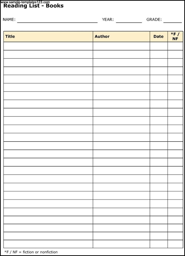 Reading List Template was posted in July 14, 2017 at 10:23 am. If you wanna have it as yours, please click the Pictures and you will go to click right mouse then Save Image As and Click Save and download the Reading List Template Picture.. Don’t forget to share this picture with others via Facebook, Twitter, Pinterest or other social medias! we do hope you'll get inspired by SampleTemplates123... Thanks again! If you have any DMCA issues on this post, please contact us!