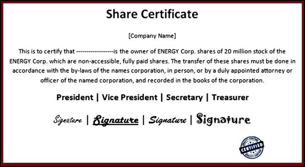Businees Share Certificate Microsoft Word :