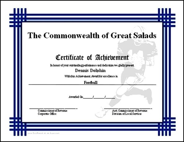 Example Football Achievement Certificate Template was posted in October 17, 2017 at 2:20 pm. If you wanna have it as yours, please click the Pictures and you will go to click right mouse then Save Image As and Click Save and download the Example Football Achievement Certificate Template Picture.. Don’t forget to share this picture with others via Facebook, Twitter, Pinterest or other social medias! we do hope you'll get inspired by SampleTemplates123... Thanks again! If you have any DMCA issues on this post, please contact us!