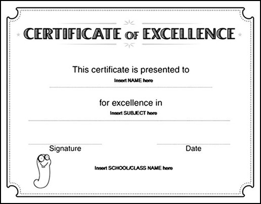 Excellence Certificate Template :