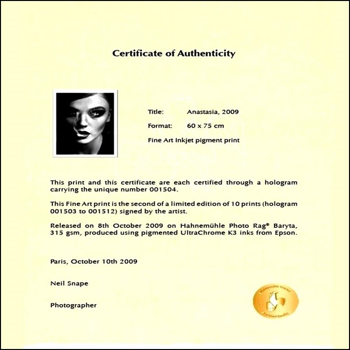 Sample Certificate of Authenticity Template :