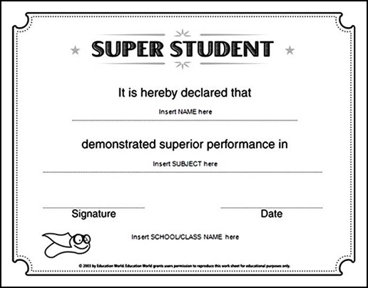 Super Student Certificate was posted in July 24, 2017 at 11:05 am. If you wanna have it as yours, please click the Pictures and you will go to click right mouse then Save Image As and Click Save and download the Super Student Certificate Picture.. Don’t forget to share this picture with others via Facebook, Twitter, Pinterest or other social medias! we do hope you'll get inspired by SampleTemplates123... Thanks again! If you have any DMCA issues on this post, please contact us!