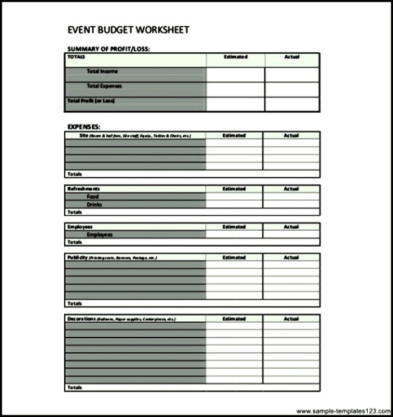 Event Budget Worksheet Example :
