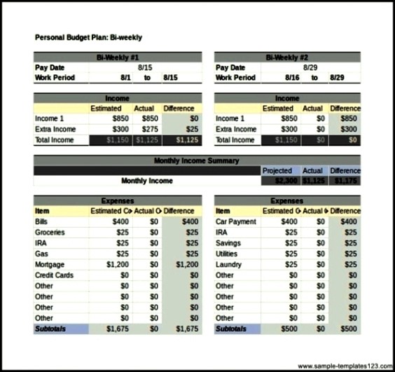 Personal Budget Tracker Template Bi Weekly Excel Format