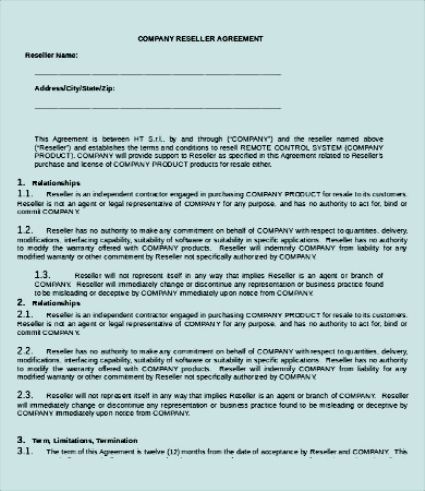 Company Reseller Agreement Template