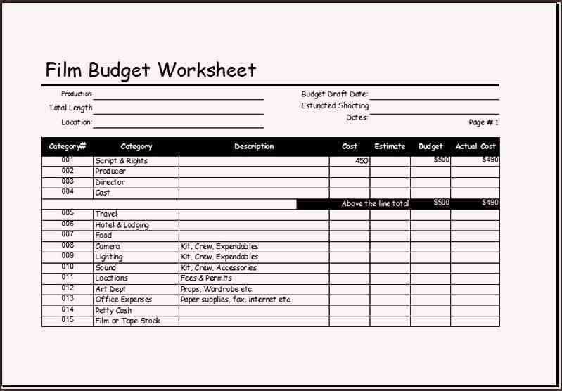 Film Budget Worksheet was posted in October 10, 2017 at 2:29 am. If you wanna have it as yours, please click the Pictures and you will go to click right mouse then Save Image As and Click Save and download the Film Budget Worksheet Picture.. Don’t forget to share this picture with others via Facebook, Twitter, Pinterest or other social medias! we do hope you'll get inspired by SampleTemplates123... Thanks again! If you have any DMCA issues on this post, please contact us!