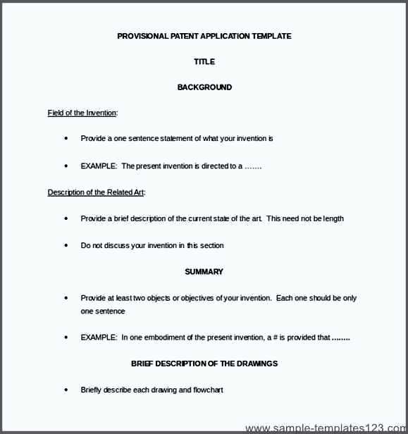 Provisional Patent Application Template was posted in December 14, 2017 at 9:16 am. If you wanna have it as yours, please click the Pictures and you will go to click right mouse then Save Image As and Click Save and download the Provisional Patent Application Template Picture.. Don’t forget to share this picture with others via Facebook, Twitter, Pinterest or other social medias! we do hope you'll get inspired by SampleTemplates123... Thanks again! If you have any DMCA issues on this post, please contact us!
