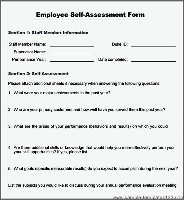 Employee Self Assessment Form Template was posted in October 19, 2017 at 1:04 pm. If you wanna have it as yours, please click the Pictures and you will go to click right mouse then Save Image As and Click Save and download the Employee Self Assessment Form Template Picture.. Don’t forget to share this picture with others via Facebook, Twitter, Pinterest or other social medias! we do hope you'll get inspired by SampleTemplates123... Thanks again! If you have any DMCA issues on this post, please contact us!
