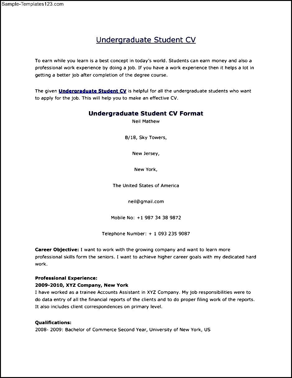 Undergraduate Student CV Format - There are a lot of affordable templates out there, but it can be easy to feel like a lot of the best cost a amount of money, require best special design template. Making the best template format choice is way to your template success. And if at this time you are looking for information and ideas regarding the Undergraduate Student CV Format then, you are in the perfect place. Get this Undergraduate Student CV Format for free here. We hope this post Undergraduate Student CV Format inspired you and help you what you are looking for.