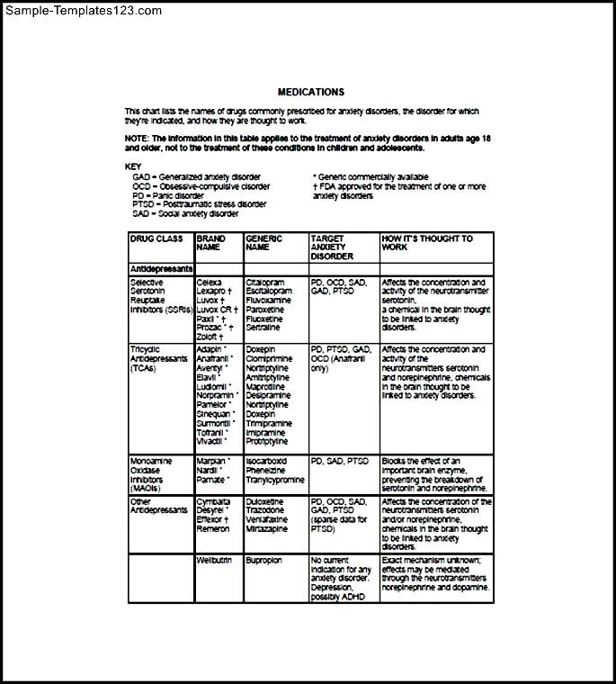 Anxiety Medication List Template Free :