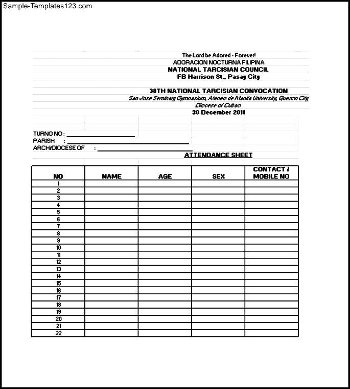 Attendance List Template Excel was posted in August 24, 2017 at 10:59 pm. If you wanna have it as yours, please click the Pictures and you will go to click right mouse then Save Image As and Click Save and download the Attendance List Template Excel Picture.. Don’t forget to share this picture with others via Facebook, Twitter, Pinterest or other social medias! we do hope you'll get inspired by SampleTemplates123... Thanks again! If you have any DMCA issues on this post, please contact us!