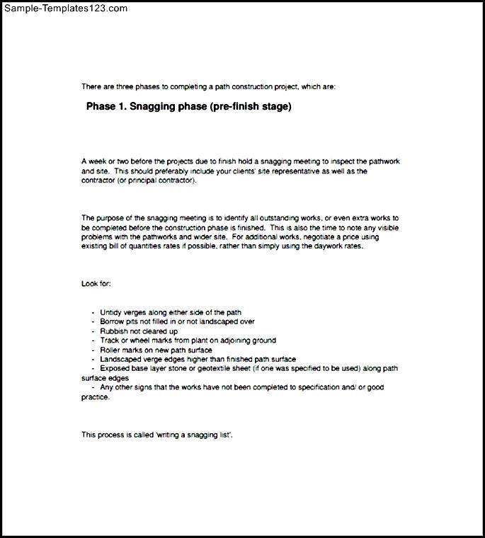 Project Snag List Template Free :