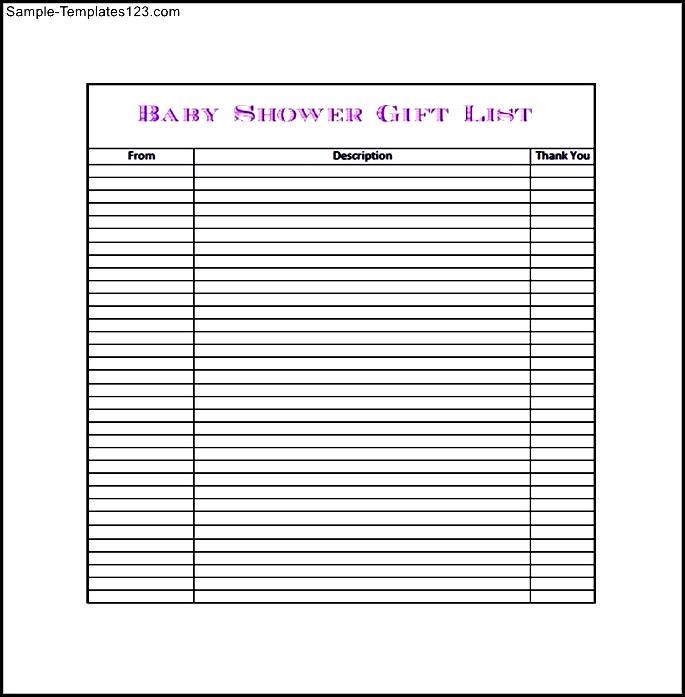 Sample Baby Shower Gift List Template was posted in August 27, 2017 at 3:55 am. If you wanna have it as yours, please click the Pictures and you will go to click right mouse then Save Image As and Click Save and download the Sample Baby Shower Gift List Template Picture.. Don’t forget to share this picture with others via Facebook, Twitter, Pinterest or other social medias! we do hope you'll get inspired by SampleTemplates123... Thanks again! If you have any DMCA issues on this post, please contact us!