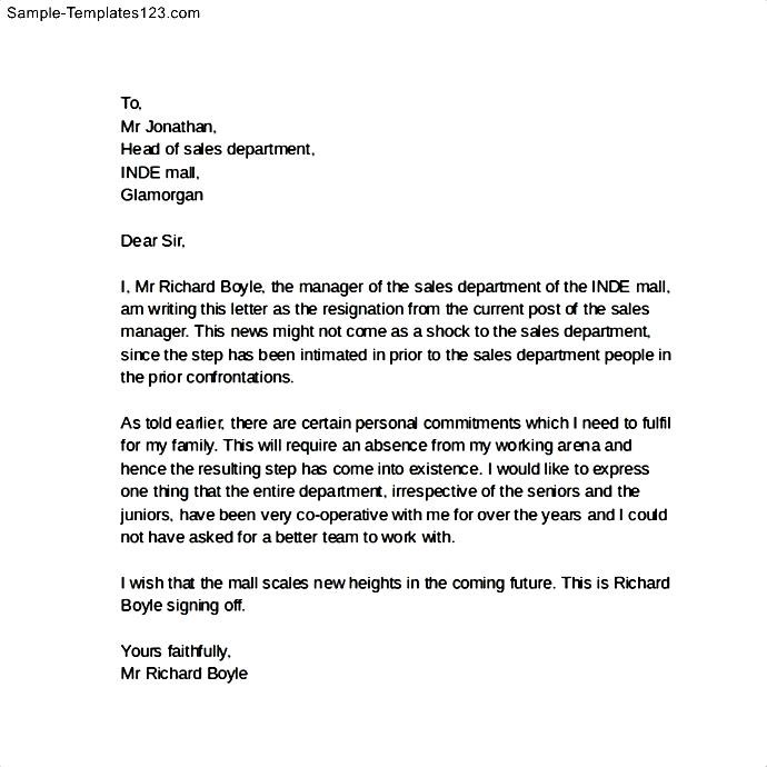 2 Weeks Resignation Notice Letter To Sales Manager :