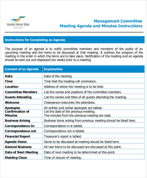 - Committee Name: Clearly identifies the specific committee holding the meeting (e.g., Finance Committee, Marketing Committee, Board of Directors).