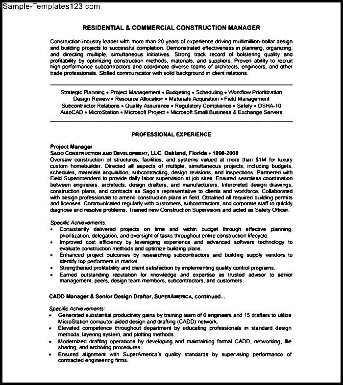 Construction Resume Template Free was posted in August 3, 2017 at 1:08 am. If you wanna have it as yours, please click the Pictures and you will go to click right mouse then Save Image As and Click Save and download the Construction Resume Template Free Picture.. Don’t forget to share this picture with others via Facebook, Twitter, Pinterest or other social medias! we do hope you'll get inspired by SampleTemplates123... Thanks again! If you have any DMCA issues on this post, please contact us!