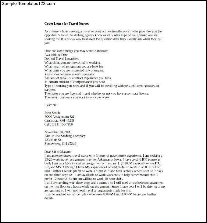 Cover Letter for Travel Nurses Word Template Free Download :