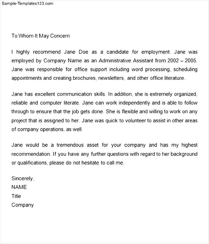 Employment Recommendation Letter for Previous Employee was posted in September 7, 2017 at 4:15 am. If you wanna have it as yours, please click the Pictures and you will go to click right mouse then Save Image As and Click Save and download the Employment Recommendation Letter for Previous Employee Picture.. Don’t forget to share this picture with others via Facebook, Twitter, Pinterest or other social medias! we do hope you'll get inspired by SampleTemplates123... Thanks again! If you have any DMCA issues on this post, please contact us!