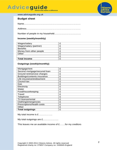 Rental Budget Worksheet For Tenants