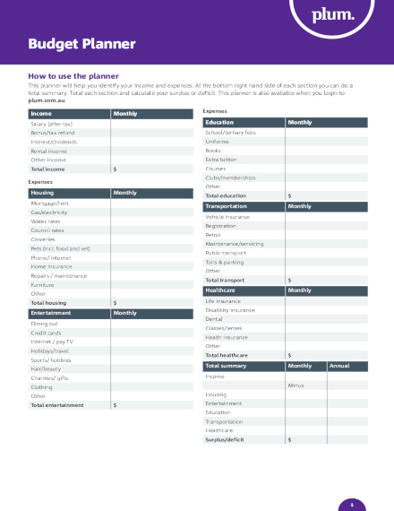 - Housing: Mortgage/Rent, Property Taxes, Homeowners Insurance.