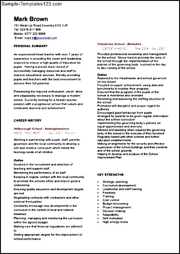 Curriculum Vitae Teacher Format :