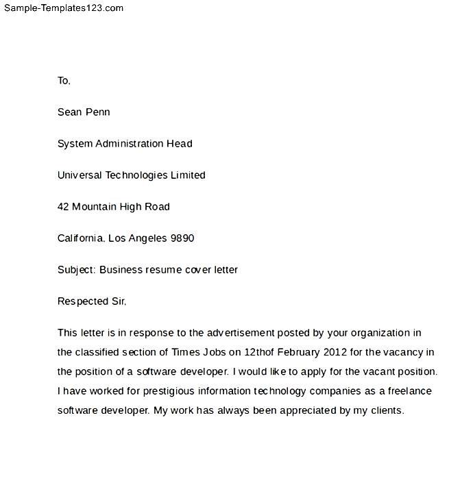 Free Download Business Cover Letter :