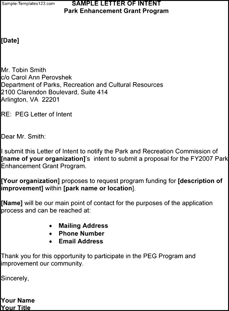 Letter of Intent Template Free :