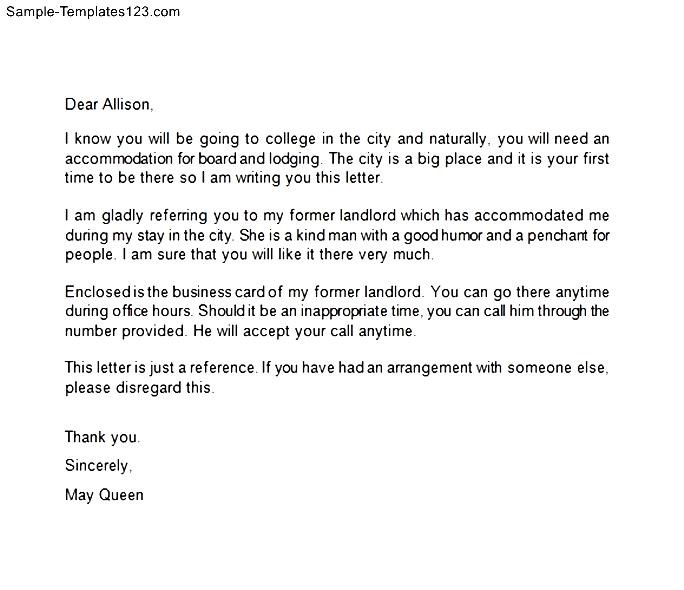 Sample Landlord Reference Letter was posted in June 17, 2017 at 6:11 am. If you wanna have it as yours, please click the Pictures and you will go to click right mouse then Save Image As and Click Save and download the Sample Landlord Reference Letter Picture.. Don’t forget to share this picture with others via Facebook, Twitter, Pinterest or other social medias! we do hope you'll get inspired by SampleTemplates123... Thanks again! If you have any DMCA issues on this post, please contact us!