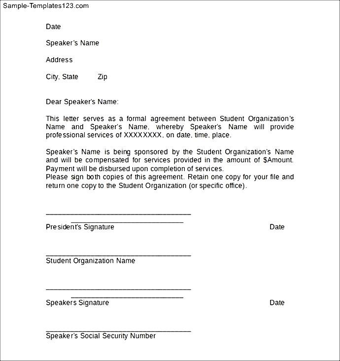 Sample Letter Of Agreement