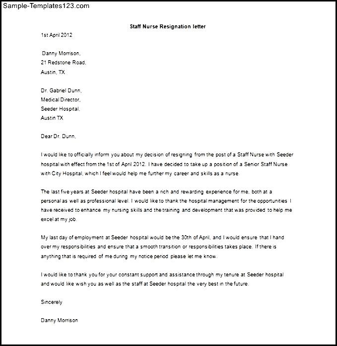Staff Nurse Resignation Letter Template Example Download :