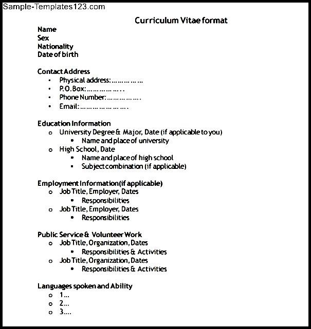 General CV Template Format was posted in August 6, 2017 at 11:22 pm. If you wanna have it as yours, please click the Pictures and you will go to click right mouse then Save Image As and Click Save and download the General CV Template Format Picture.. Don’t forget to share this picture with others via Facebook, Twitter, Pinterest or other social medias! we do hope you'll get inspired by SampleTemplates123... Thanks again! If you have any DMCA issues on this post, please contact us!