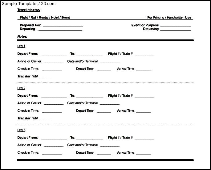 Sample Travel Itinerary Template Free Download :